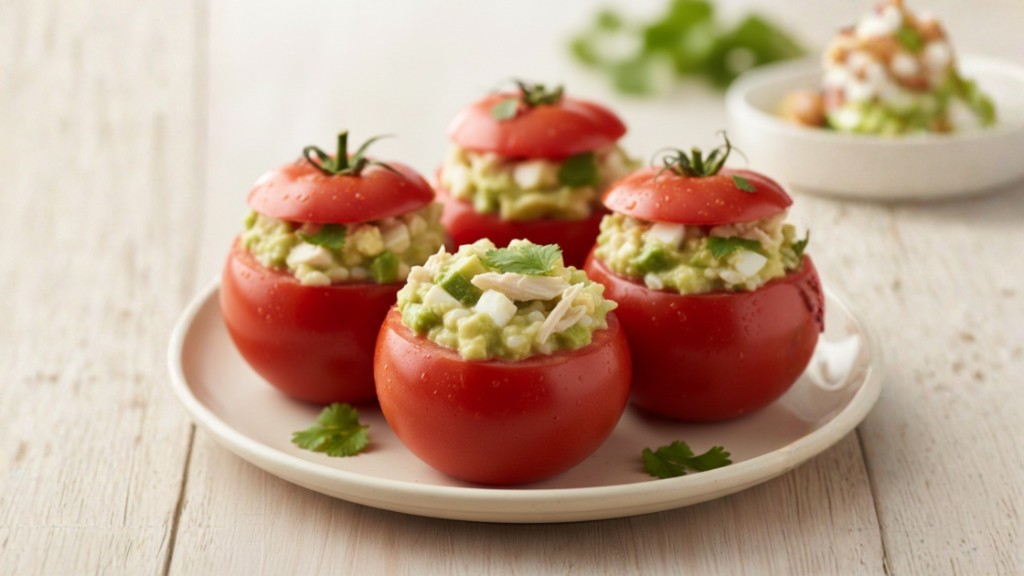 - Cortar la tapa del tomate y ahuecar ligeramente.